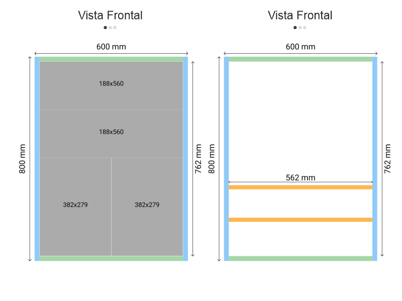Después de crear un módulo, analiza el mismo desde 3 vistas. Simulación realista de colocación de frentes, estantes, traseras, y según tipo de fabricación.